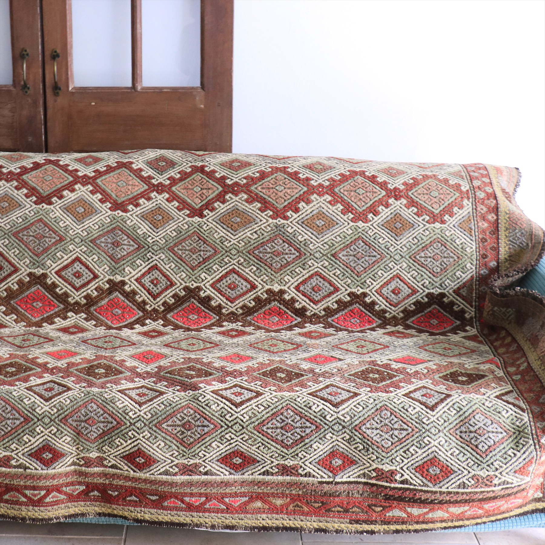 - オールドキリム ジジム エスキシェヒ―ル218×141cm 連続するドラゴンのモチーフ