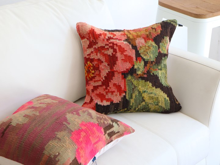 Key:Old Kilim, Kilim Cushion, Turkish Kilim, BOHO, Bohemian Decor, Vintage kilim, クッションカバー, オールドキリム, トルコ, ヴィンテージキリム, トライバルラグ, ピロー, ボヘミアンスタイル, BO-HO, ウール100%, 手織り, 一点もの, ガラタバザール
