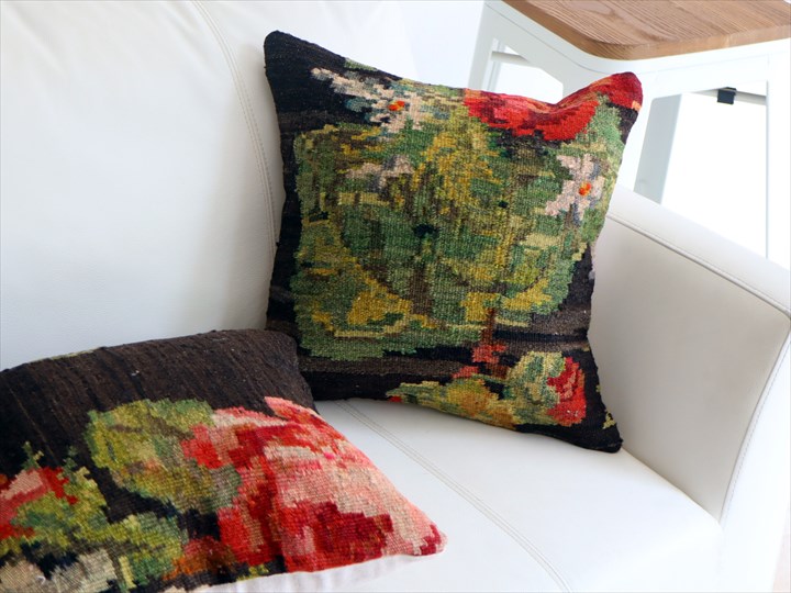 Key:Old Kilim, Kilim Cushion, Turkish Kilim, BOHO, Bohemian Decor, Vintage kilim, クッションカバー, オールドキリム, トルコ, ヴィンテージキリム, トライバルラグ, ピロー, ボヘミアンスタイル, BO-HO, ウール100%, 手織り, 一点もの, ガラタバザール