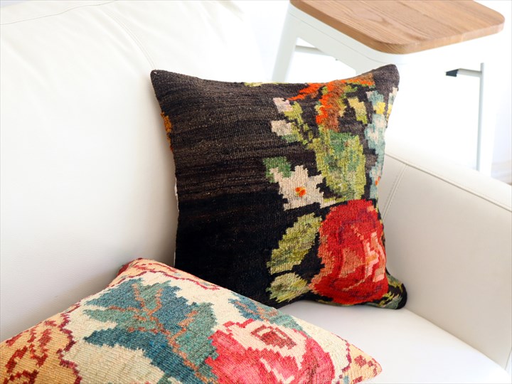 Key:Old Kilim, Kilim Cushion, Turkish Kilim, BOHO, Bohemian Decor, Vintage kilim, クッションカバー, オールドキリム, トルコ, ヴィンテージキリム, トライバルラグ, ピロー, ボヘミアンスタイル, BO-HO, ウール100%, 手織り, 一点もの, ガラタバザール