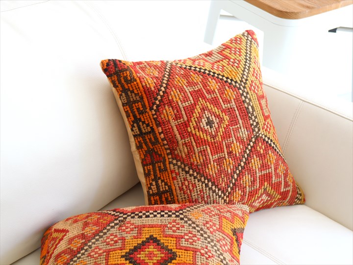 Key:Old Kilim, Kilim Cushion, Turkish Kilim, BOHO, Bohemian Decor, Vintage kilim, クッションカバー, オールドキリム, トルコ, ヴィンテージキリム, トライバルラグ, ピロー, ボヘミアンスタイル, BO-HO, ウール100%, 手織り, 一点もの, ガラタバザール