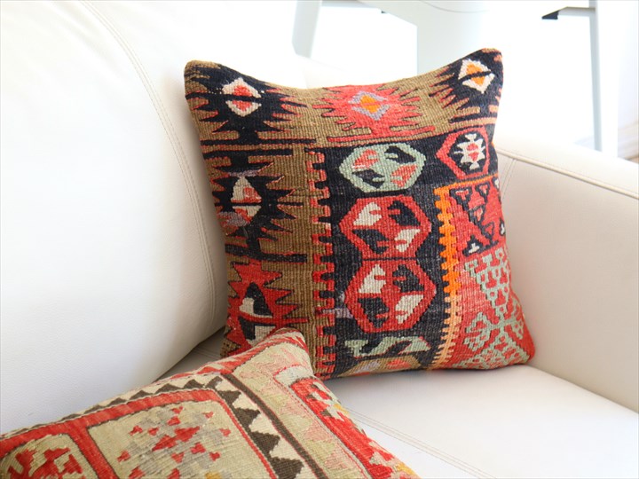 Key:Old Kilim, Kilim Cushion, Turkish Kilim, BOHO, Bohemian Decor, Vintage kilim, クッションカバー, オールドキリム, トルコ, ヴィンテージキリム, トライバルラグ, ピロー, ボヘミアンスタイル, BO-HO, ウール100%, 手織り, 一点もの, ガラタバザール