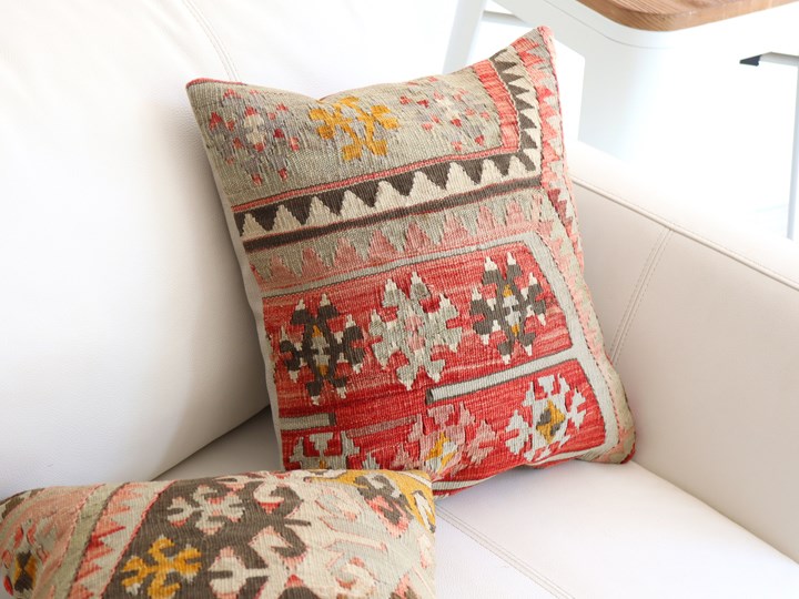 Key:Old Kilim, Kilim Cushion, Turkish Kilim, BOHO, Bohemian Decor, Vintage kilim, クッションカバー, オールドキリム, トルコ, ヴィンテージキリム, トライバルラグ, ピロー, ボヘミアンスタイル, BO-HO, ウール100%, 手織り, 一点もの, ガラタバザール