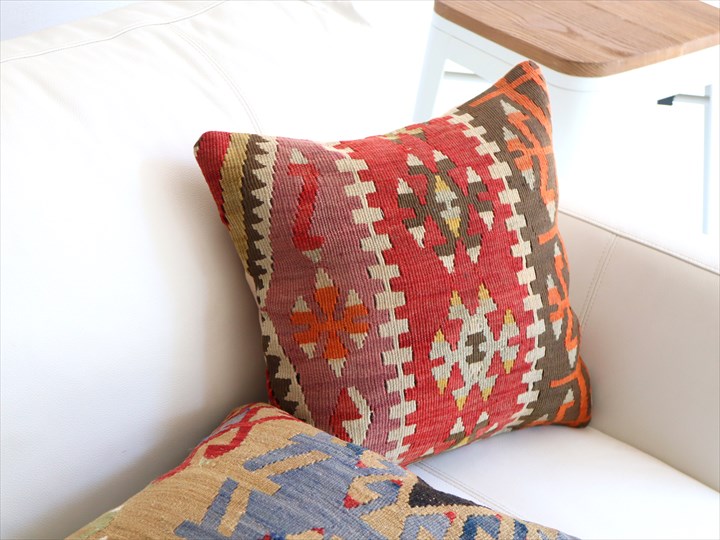 Key:Old Kilim, Kilim Cushion, Turkish Kilim, BOHO, Bohemian Decor, Vintage kilim, クッションカバー, オールドキリム, トルコ, ヴィンテージキリム, トライバルラグ, ピロー, ボヘミアンスタイル, BO-HO, ウール100%, 手織り, 一点もの, ガラタバザール