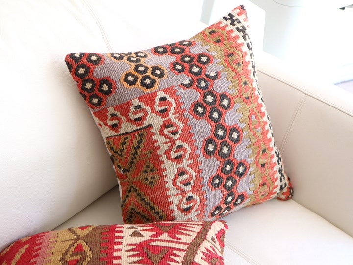 Key:Old Kilim, Kilim Cushion, Turkish Kilim, BOHO, Bohemian Decor, Vintage kilim, クッションカバー, オールドキリム, トルコ, ヴィンテージキリム, トライバルラグ, ピロー, ボヘミアンスタイル, BO-HO, ウール100%, 手織り, 一点もの, ガラタバザール