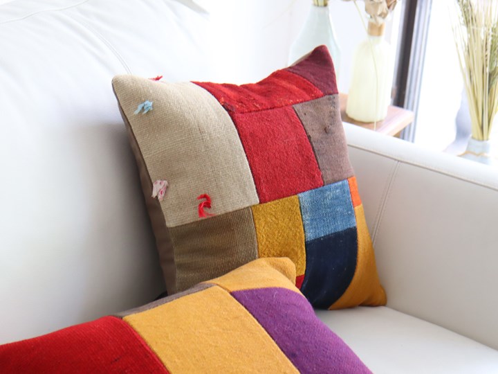 【15%OFF】オールドキリム クッションカバー39×40cm ペルデパッチワーク カラフルミックス Old Kiilim Cushion
