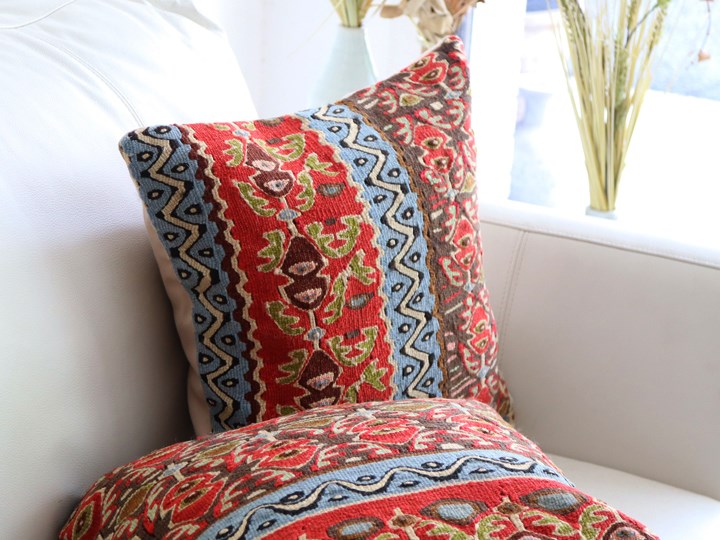 Key:Old Kilim, Kilim Cushion, Turkish Kilim, BOHO, Bohemian Decor, Vintage kilim, クッションカバー, オールドキリム, トルコ, ヴィンテージキリム, トライバルラグ, ピロー, ボヘミアンスタイル, BO-HO, ウール100%, 手織り, 一点もの, ガラタバザール