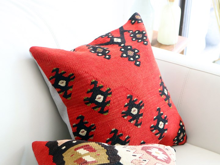 Key:Old Kilim, Kilim Cushion, Turkish Kilim, BOHO, Bohemian Decor, Vintage kilim, クッションカバー, オールドキリム, トルコ, ヴィンテージキリム, トライバルラグ, ピロー, ボヘミアンスタイル, BO-HO, ウール100%, 手織り, 一点もの, ガラタバザール