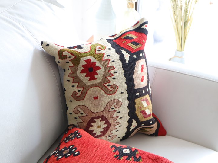 Key:Old Kilim, Kilim Cushion, Turkish Kilim, BOHO, Bohemian Decor, Vintage kilim, クッションカバー, オールドキリム, トルコ, ヴィンテージキリム, トライバルラグ, ピロー, ボヘミアンスタイル, BO-HO, ウール100%, 手織り, 一点もの, ガラタバザール