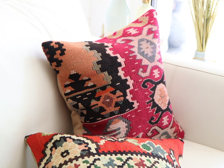 Key:Old Kilim, Kilim Cushion, Turkish Kilim, BOHO, Bohemian Decor, Vintage kilim, クッションカバー, オールドキリム, トルコ, ヴィンテージキリム, トライバルラグ, ピロー, ボヘミアンスタイル, BO-HO, ウール100%, 手織り, 一点もの, ガラタバザール