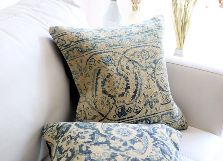 【15%OFF】ヴィンテージ 絨毯クッション45×45cm ブリーチしたアンティーク加工 Old Carpet Cushion
