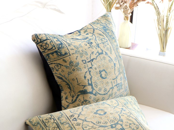 【15%OFF】ヴィンテージ 絨毯クッション45×45cm ブリーチしたアンティーク加工 Old Carpet Cushion