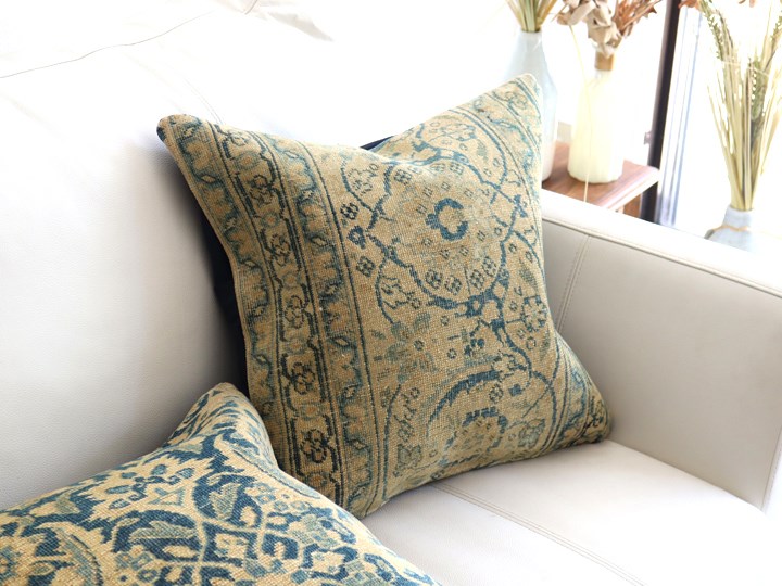 【15%OFF】ヴィンテージ 絨毯クッション45×45cm ブリーチしたアンティーク加工 Old Carpet Cushion