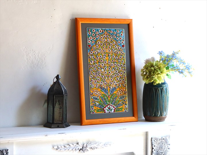 - トルコ陶器 手書きタイル 2枚額 H49.5×W30×D1.5cm プラムツリー イエロー Turkish Hand Paint Tiles