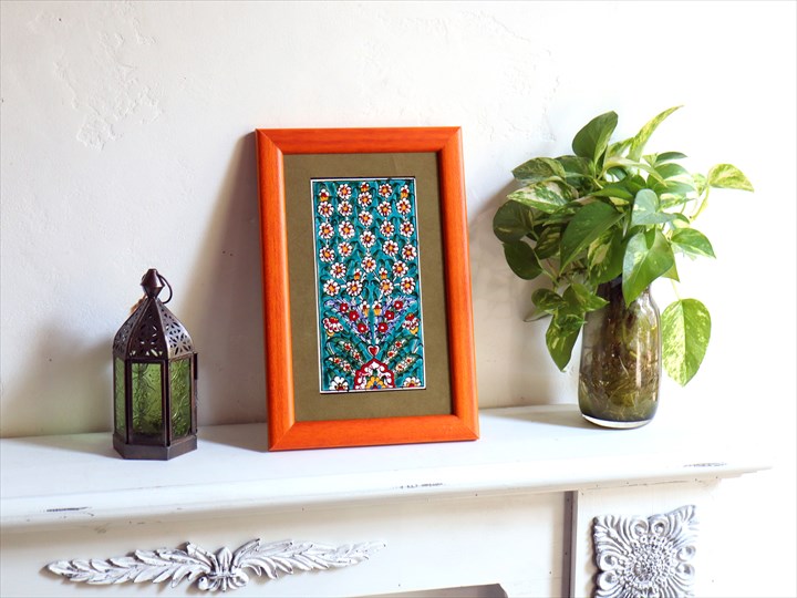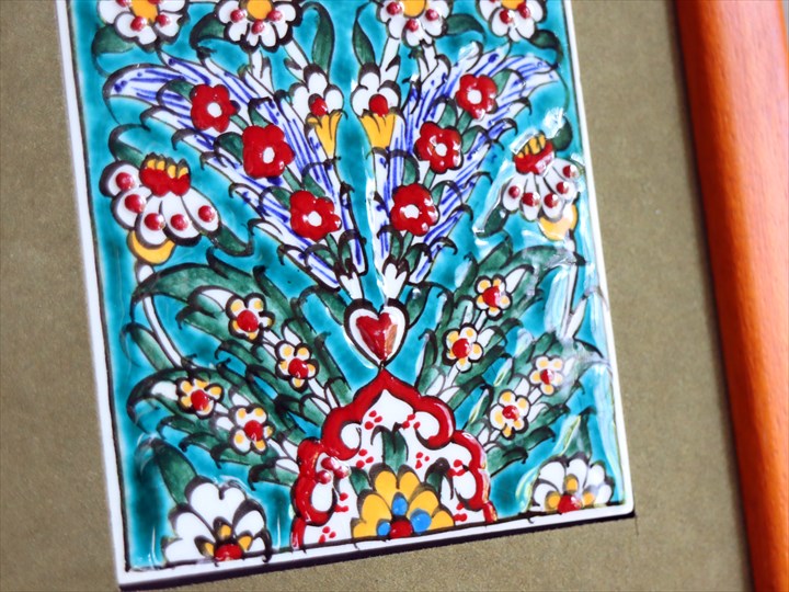 【15%OFF】手書きタイル トルコ陶器 ミニタイル1枚額 H29.5×W19.5×D1.5cm プラムツリー Turkish Hand Paint Tile