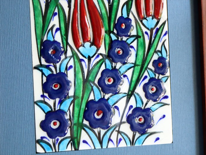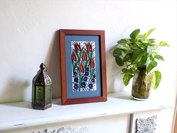 【15%OFF】手書きタイル トルコ陶器 ミニタイル1枚額 H29×W19×D1.5cm チューリップ&カーネーション Turkish Hand Paint Tile