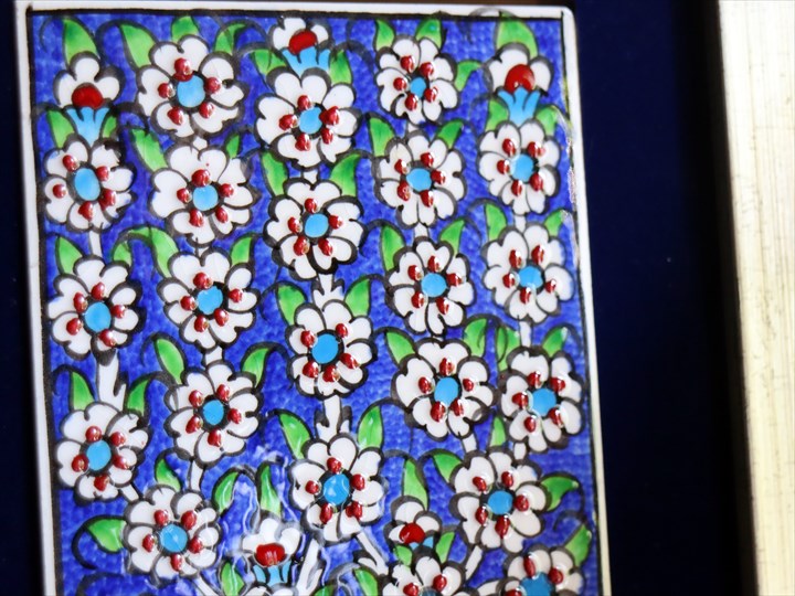 【15%OFF】手書きタイル トルコ陶器 ミニタイル1枚額 H29×W19×D1.5cm プラムツリー Turkish Hand Paint Tile