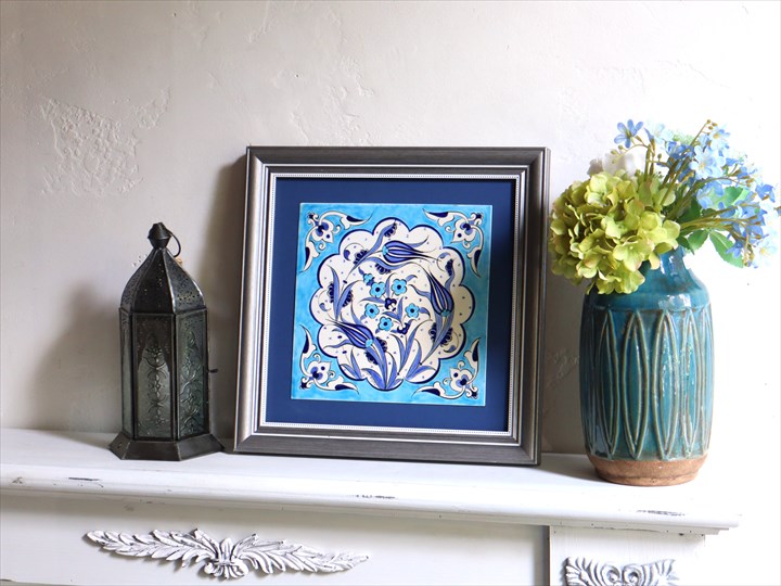 Key:タイル トルコ 陶器 イズニック キュタフヤ 手書き ハンドメイド パネル 額 インテリア 壁 ディスプレイ Iznik Tile Turkish Hand paint Handmade Ottoman Blue Mosque Kutahya