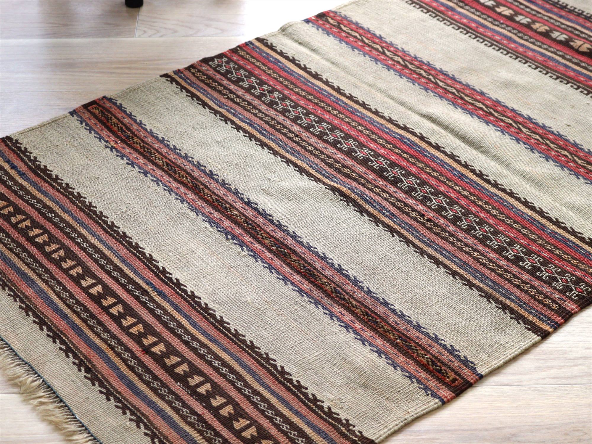 【15%OFF】バルーチ オールドキリム158×88cm 幾何学のボーダー