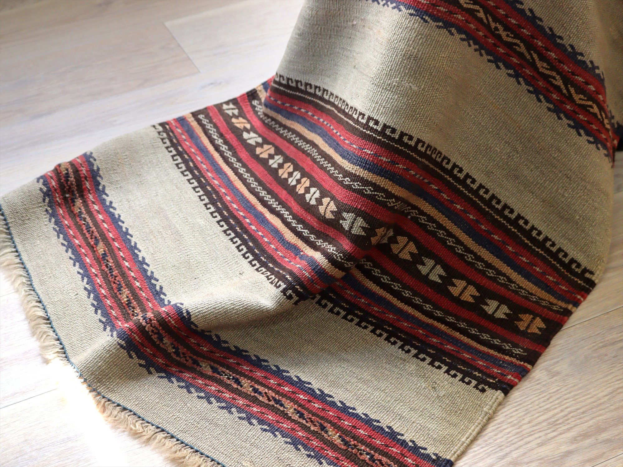 - 【15%OFF】バルーチ オールドキリム158×88cm 幾何学のボーダー