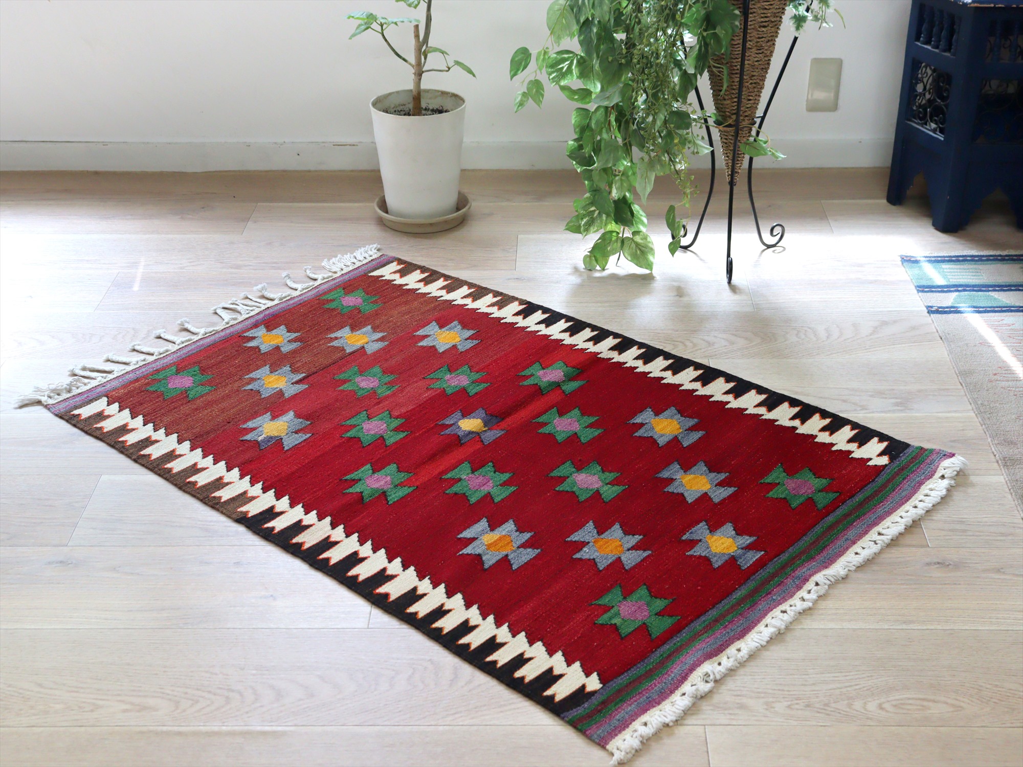 - オールドキリム チャル123×81cm イーブルアイ レッド