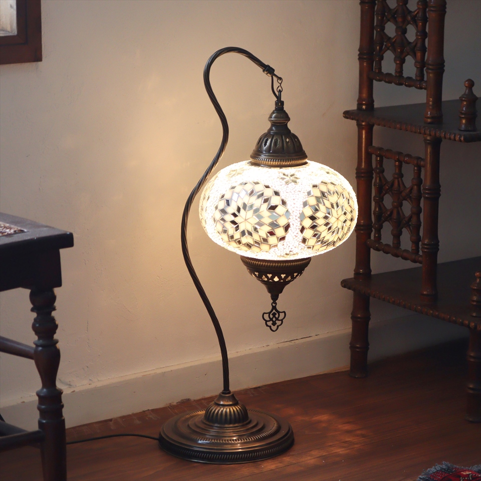 - 【10%OFF】トルコランプ モザイクスタンドランプ ハンギング 全高62cm ガラス直径24cm ホワイト