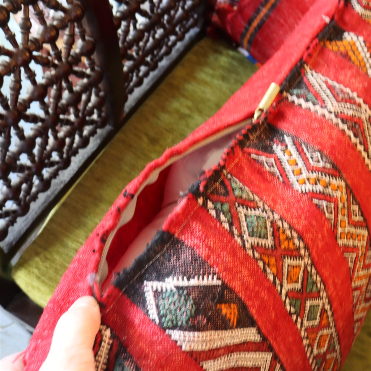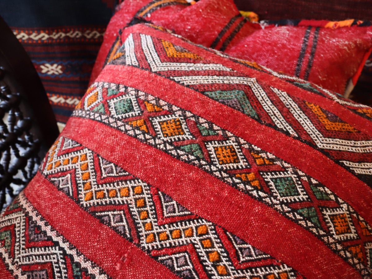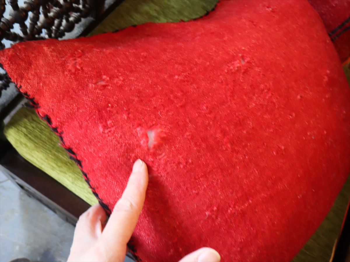 - オールドキリムクッション モロッコ オリジナル47×40cm OUTLET ホツレあり ゼモール レッド ジジム織り