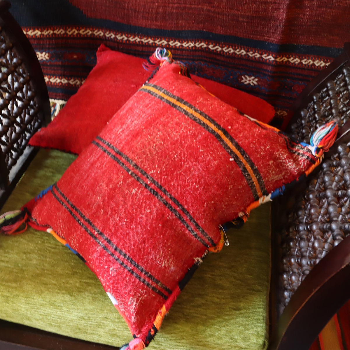 Key:オールドキリムクッションカバー ヴィンテージキリム モロッコ 手織りラグ トライバルラグ 一点もの 現品販売 キリムクッション ピロー 両面