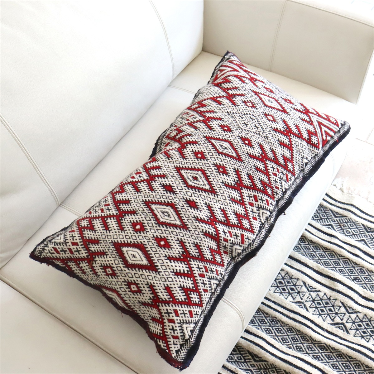 オールドキリムクッション モロッコ オリジナル70×38cm ゼアン レッド&ブラック