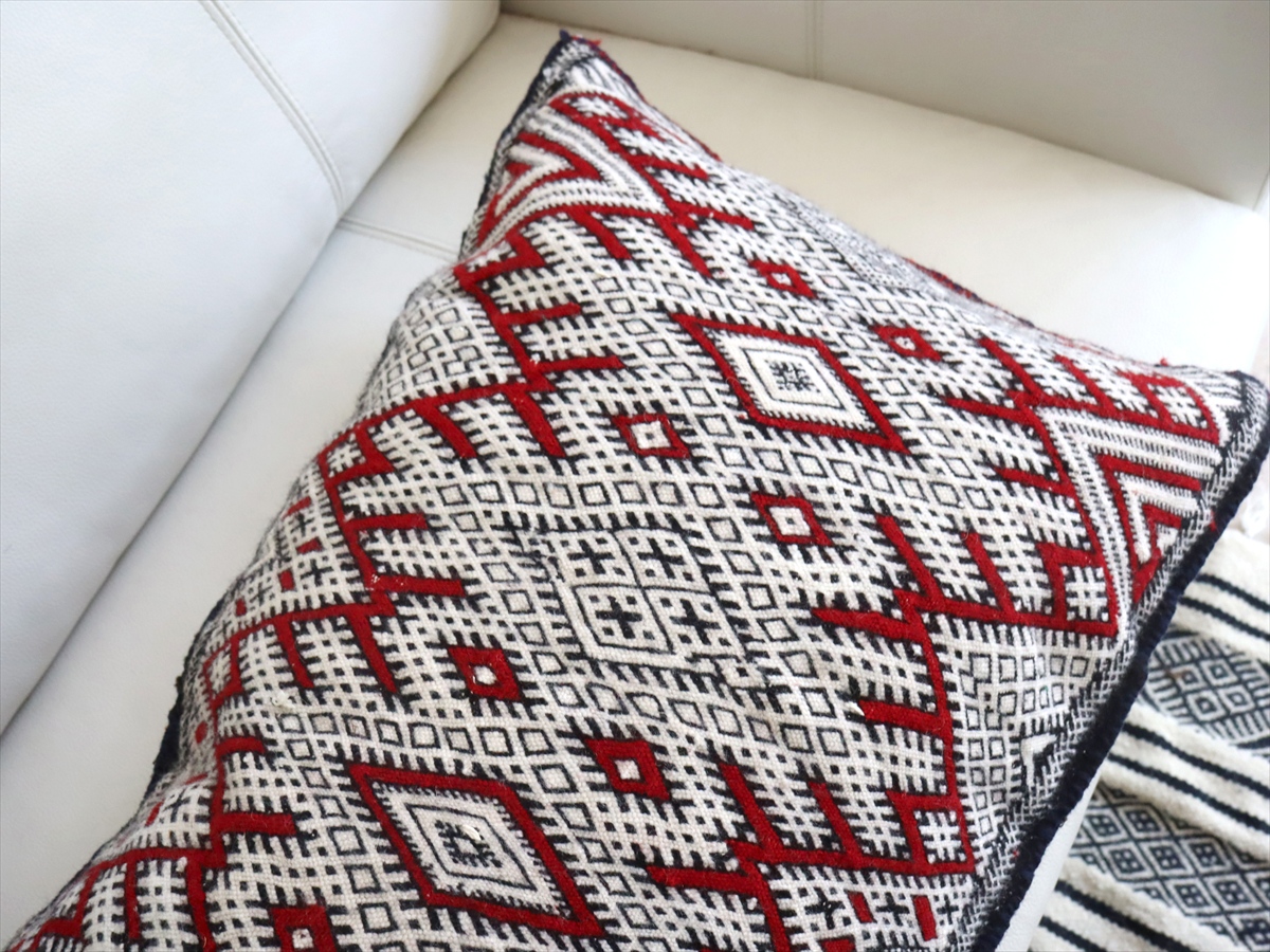 Key:オールドキリムクッションカバー ヴィンテージキリム モロッコ 手織りラグ トライバルラグ 一点もの 現品販売 キリムクッション ピロー 両面 Morocco pillow Cushion Kilim cushion