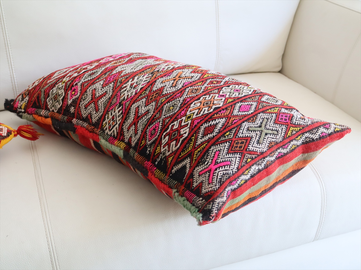 - オールドキリムクッション モロッコ オリジナル55×33cm ベルベル族 レッド ジジム