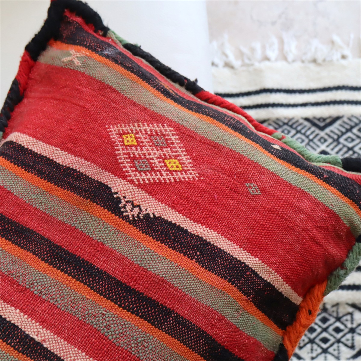 Key:オールドキリムクッションカバー ヴィンテージキリム モロッコ 手織りラグ トライバルラグ 一点もの 現品販売 キリムクッション ピロー 両面 Morocco pillow Cushion Kilim cushion
