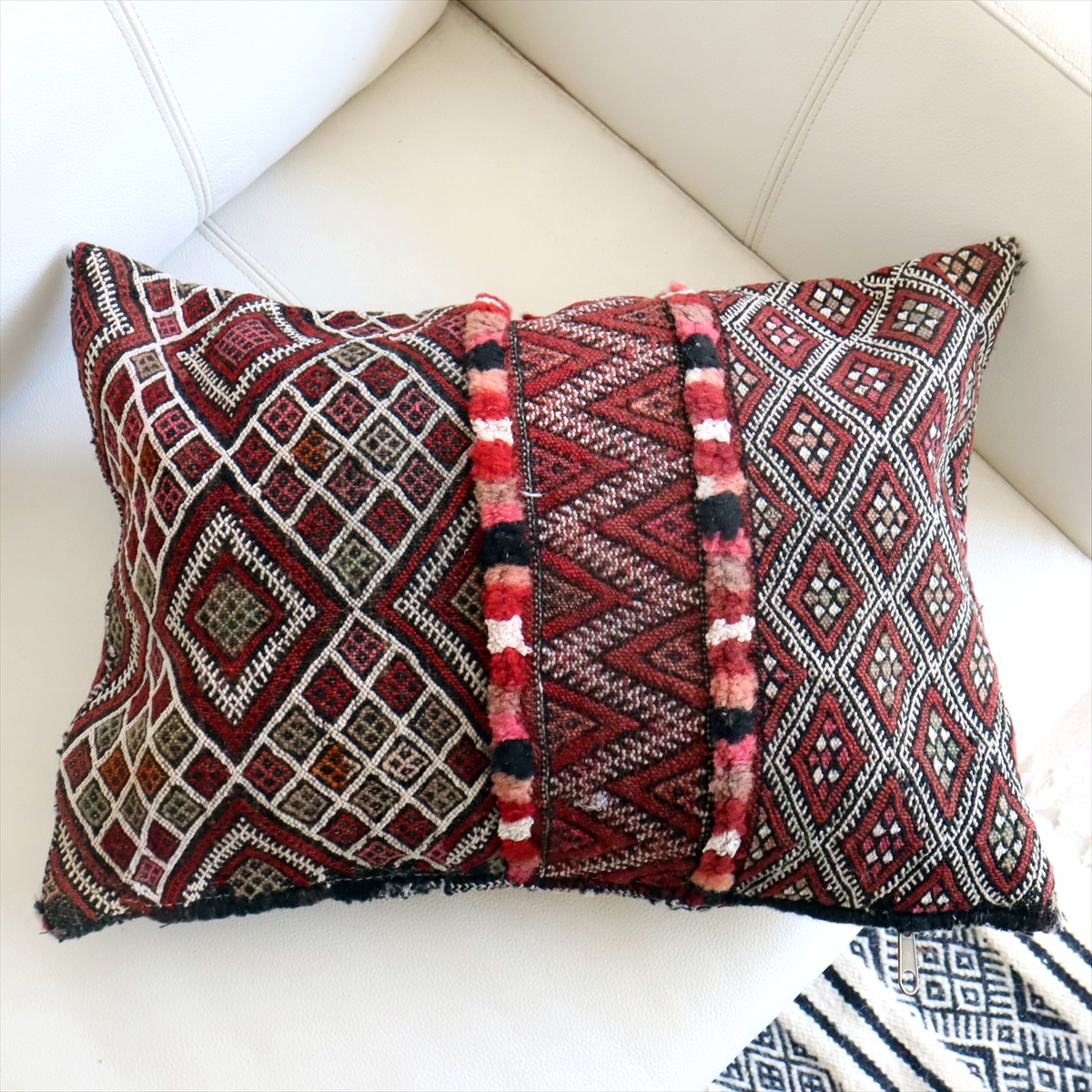 オールドキリムクッション モロッコ オリジナル45×32cm ゼアン 幾何学柄