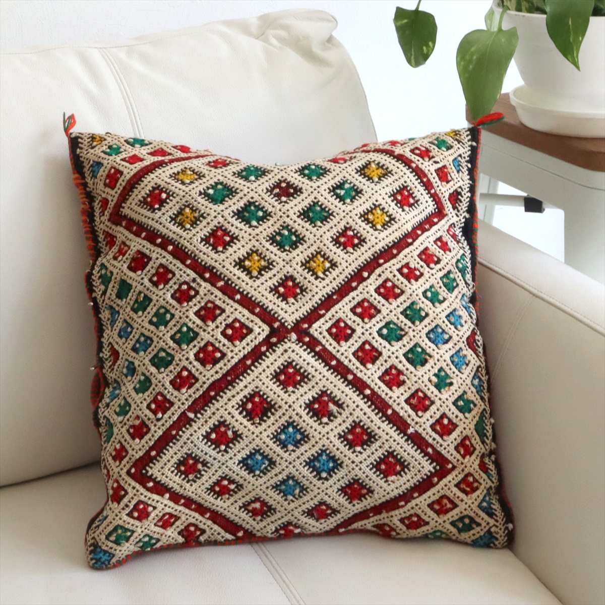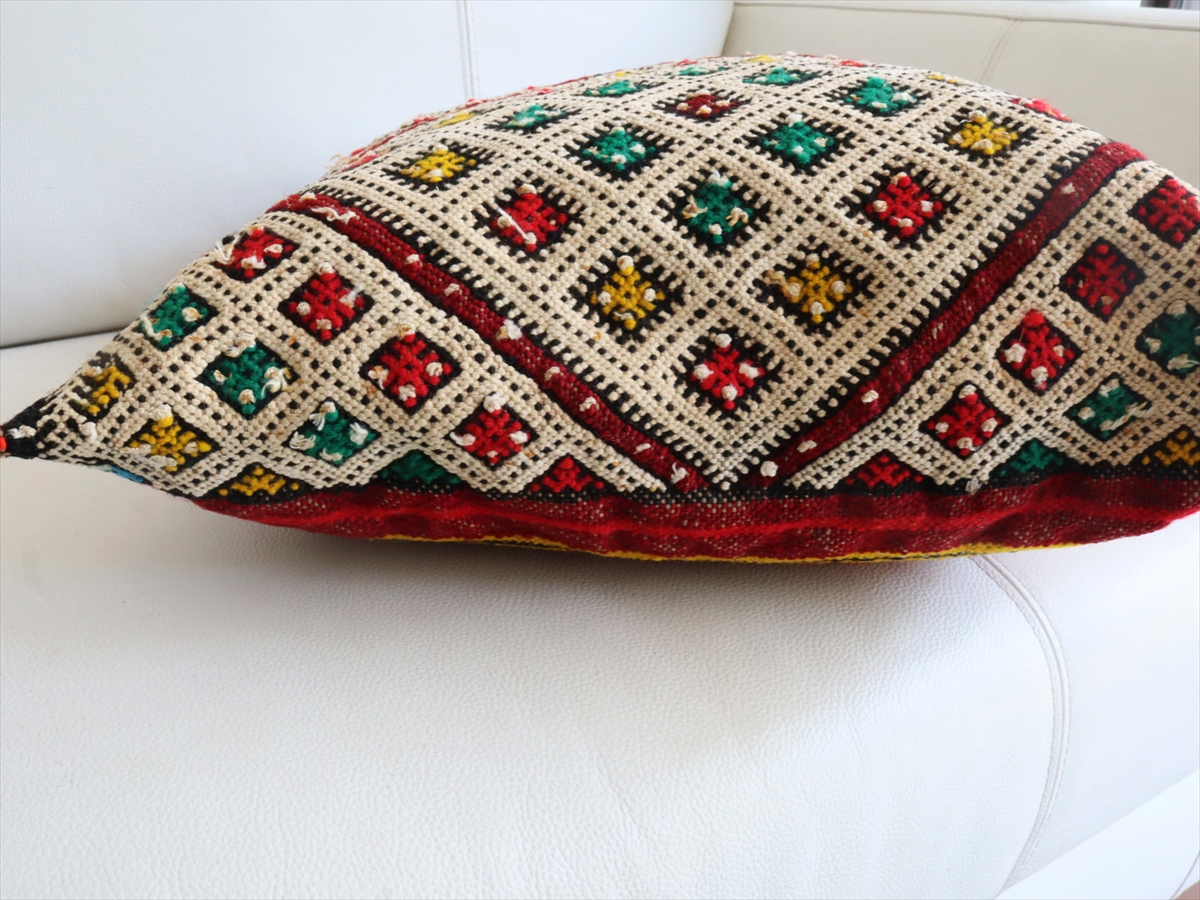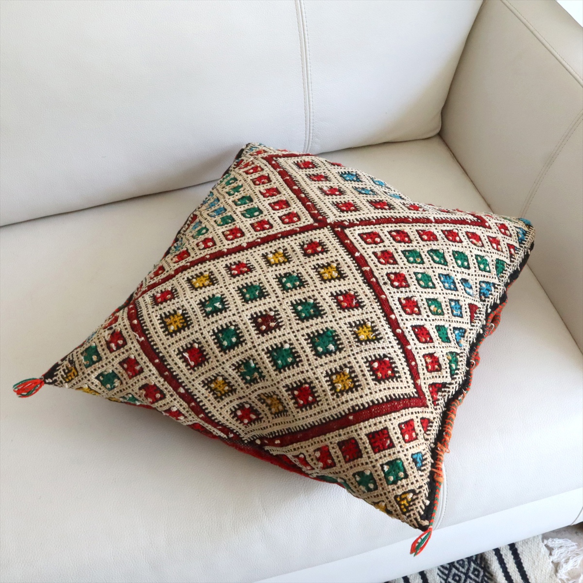 - オールドキリムクッション モロッコ オリジナル41×39cm ゼアン カラフルなジジム