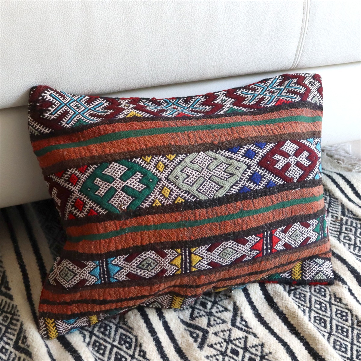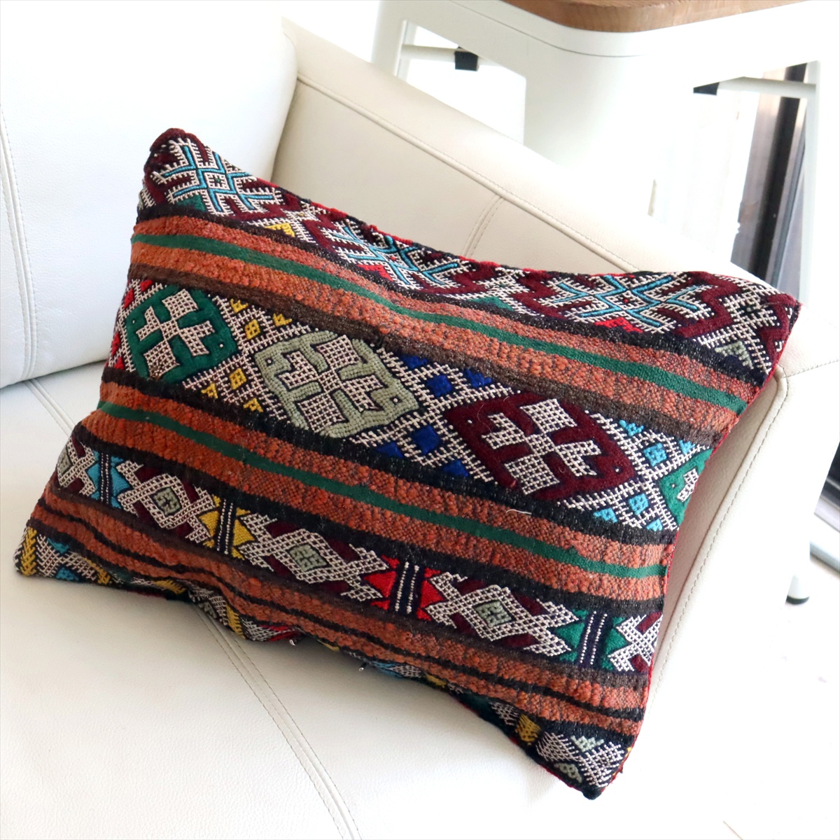 - オールドキリムクッション モロッコ オリジナル41×30cm ベルベル族 ジジム織り ボーダー