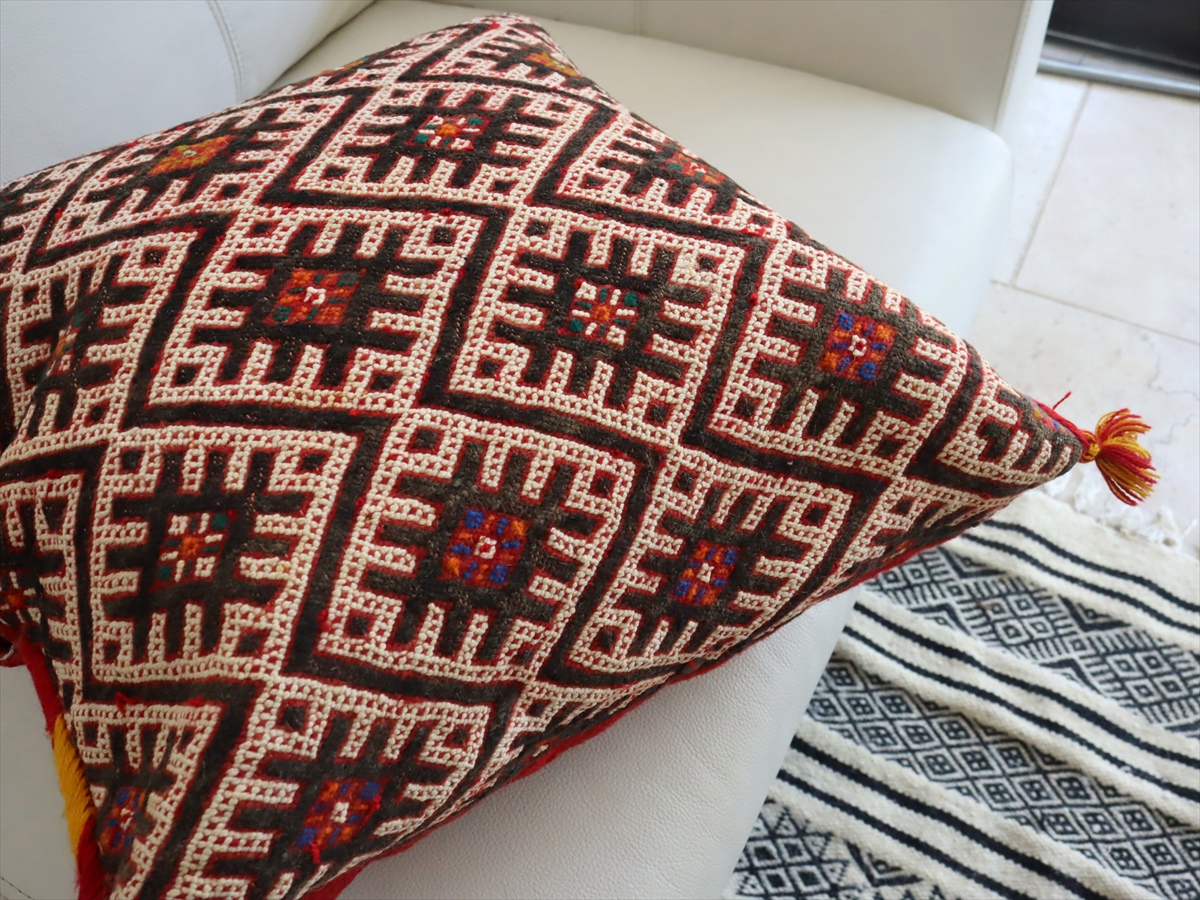 - オールドキリムクッション モロッコ オリジナル44×45cm ベルベル族 ジジム織り