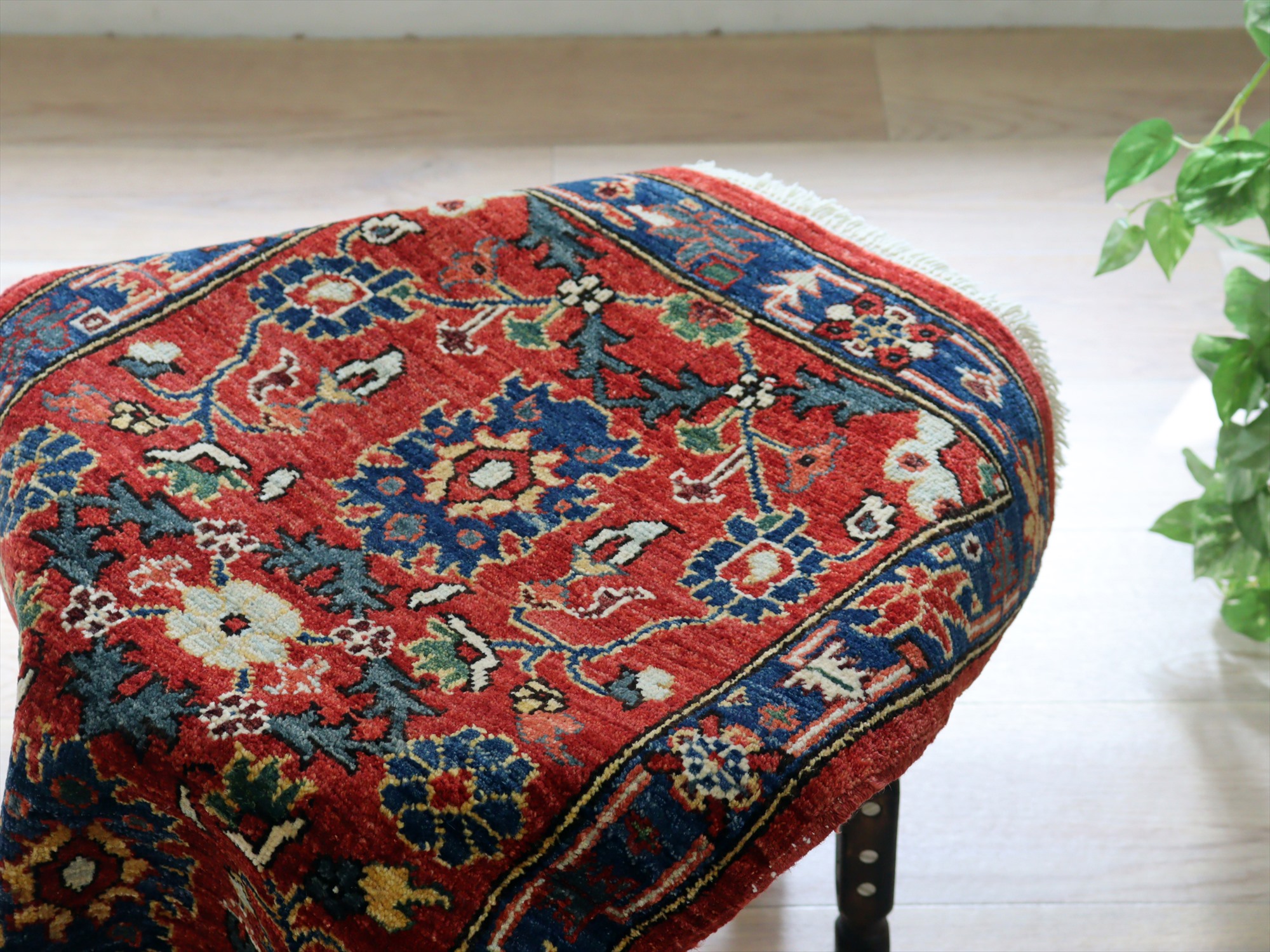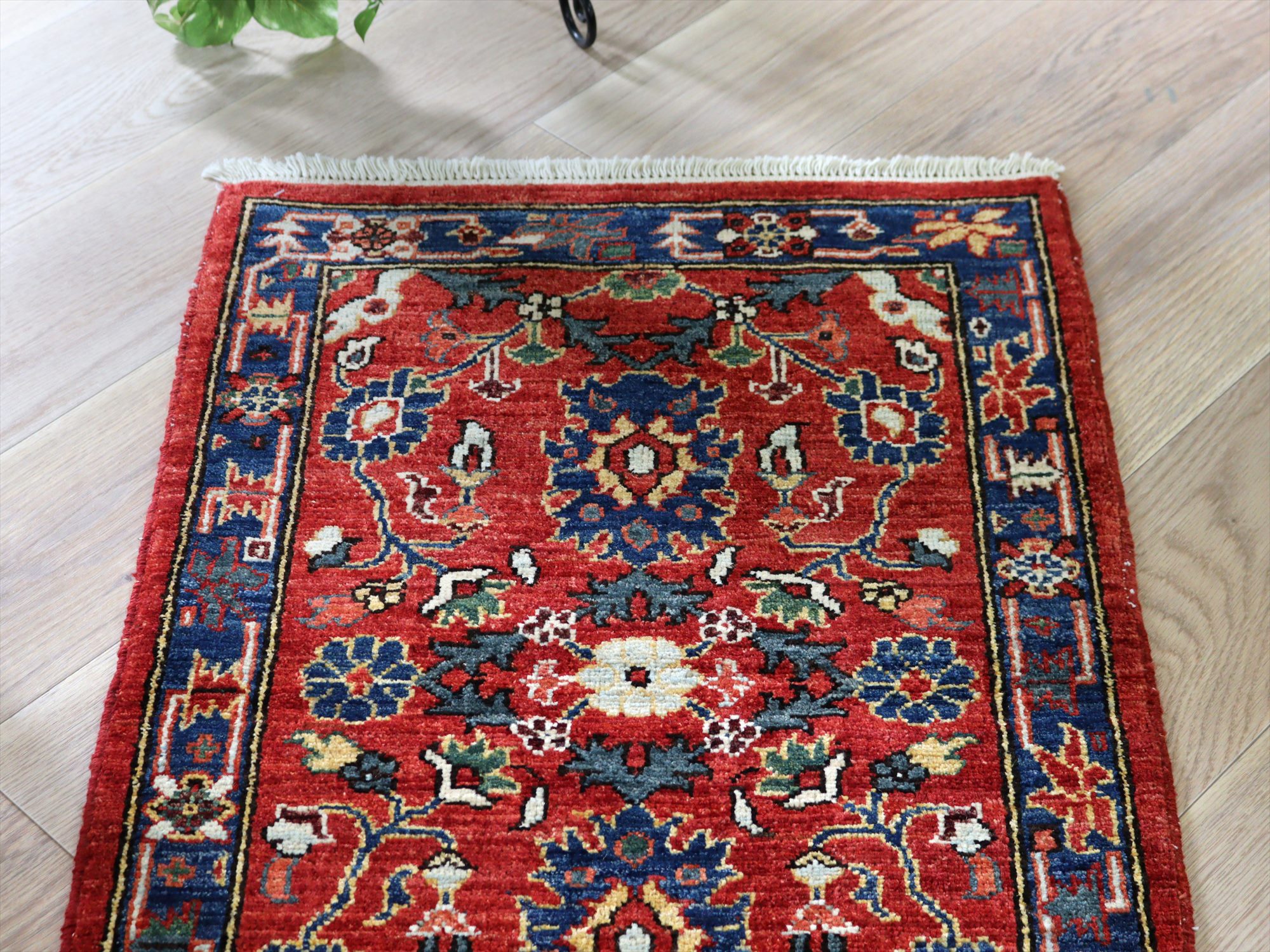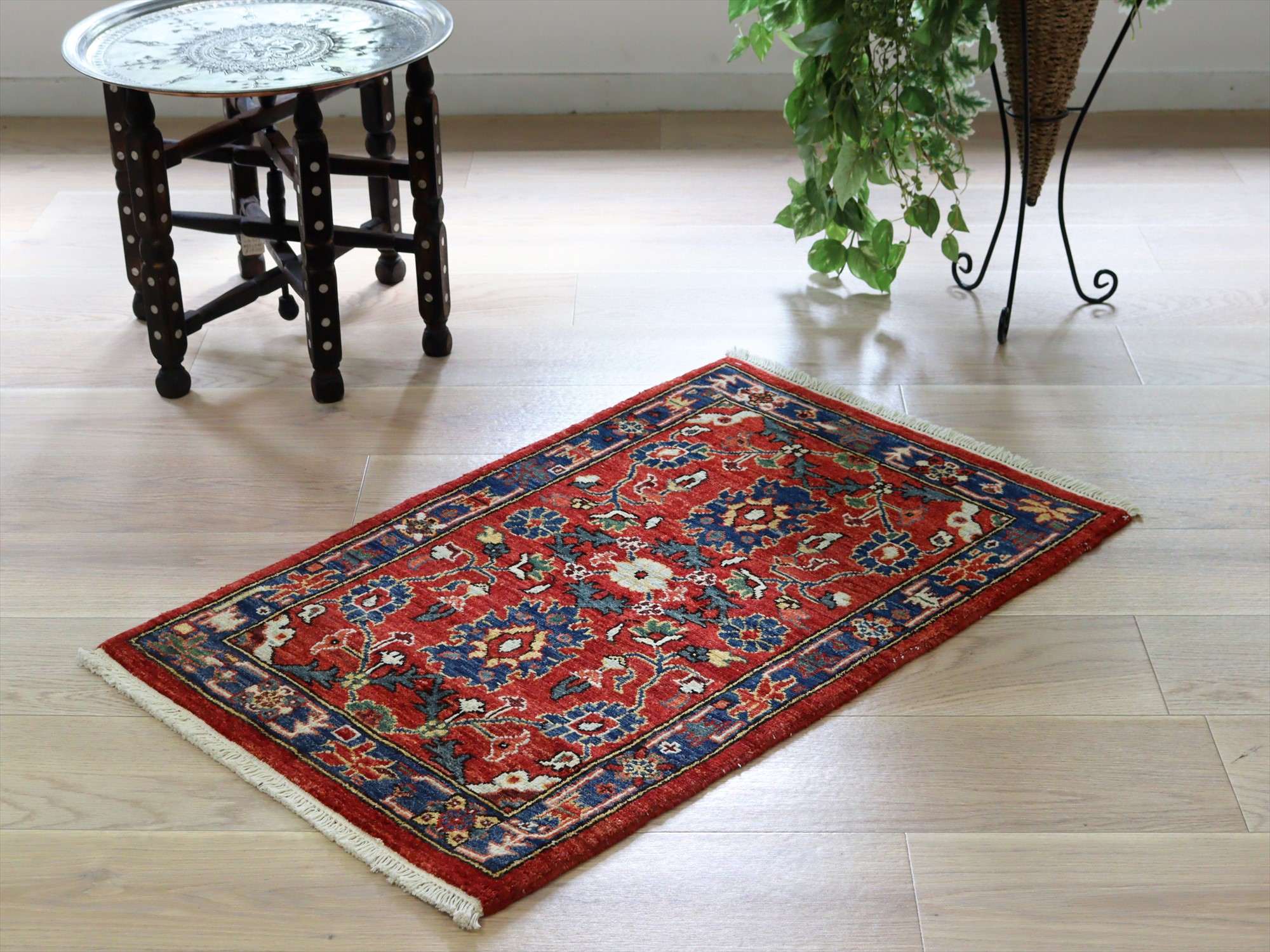 トルコの手織り絨毯 レッド 草木染98×62cm フラワーデザイン 手織りラグ