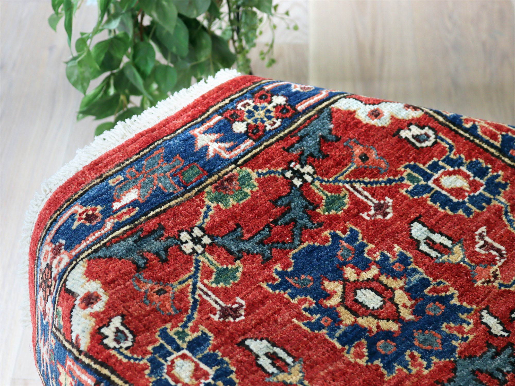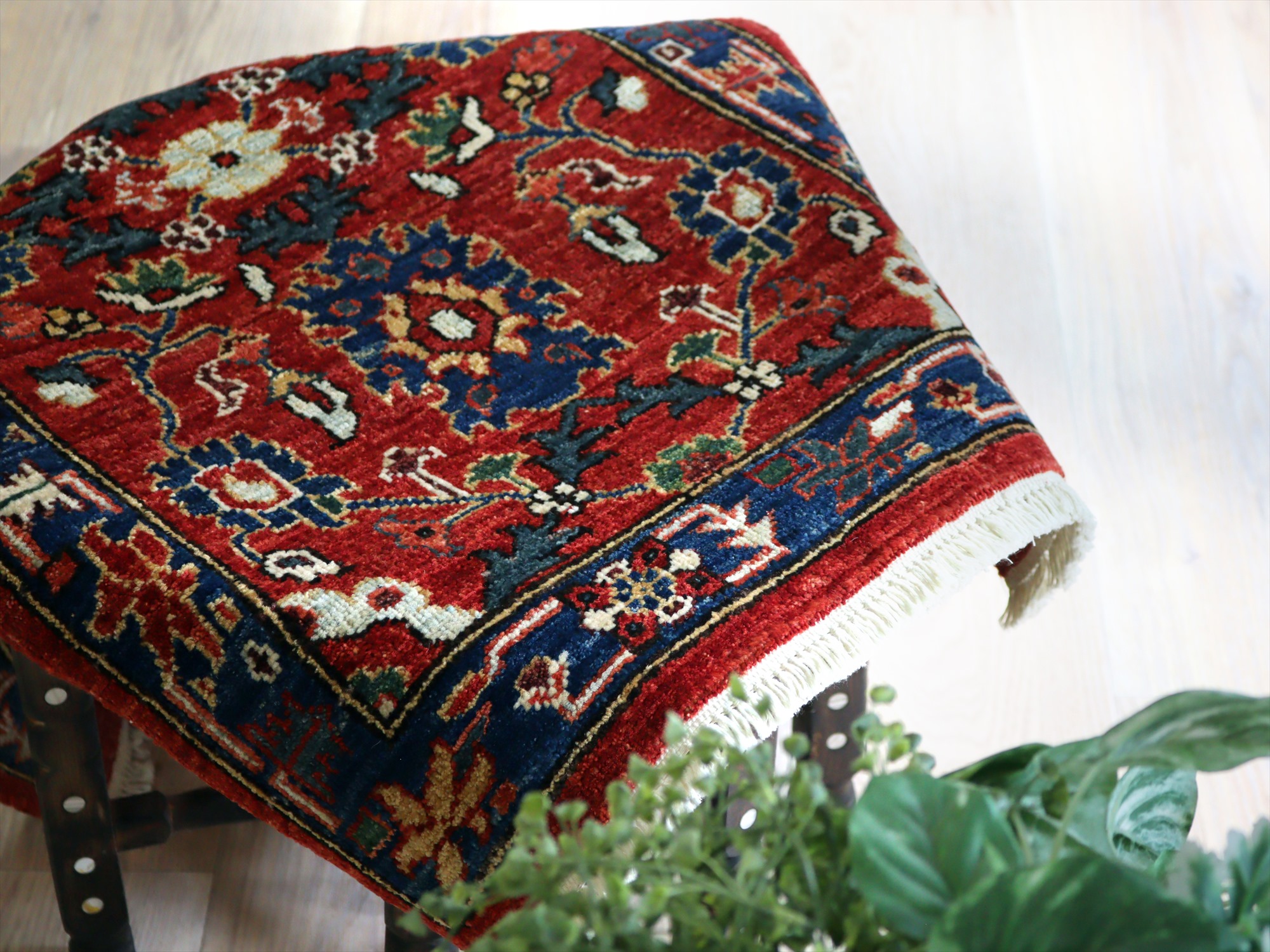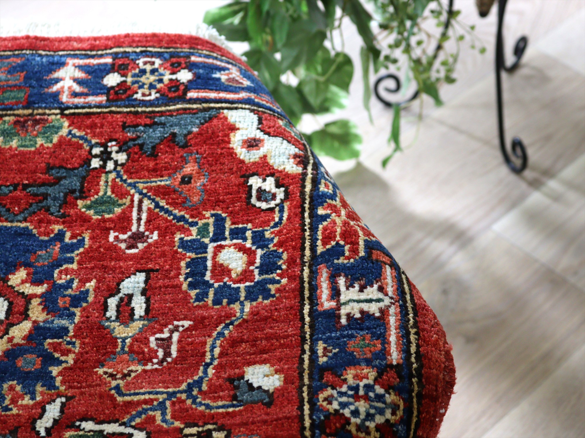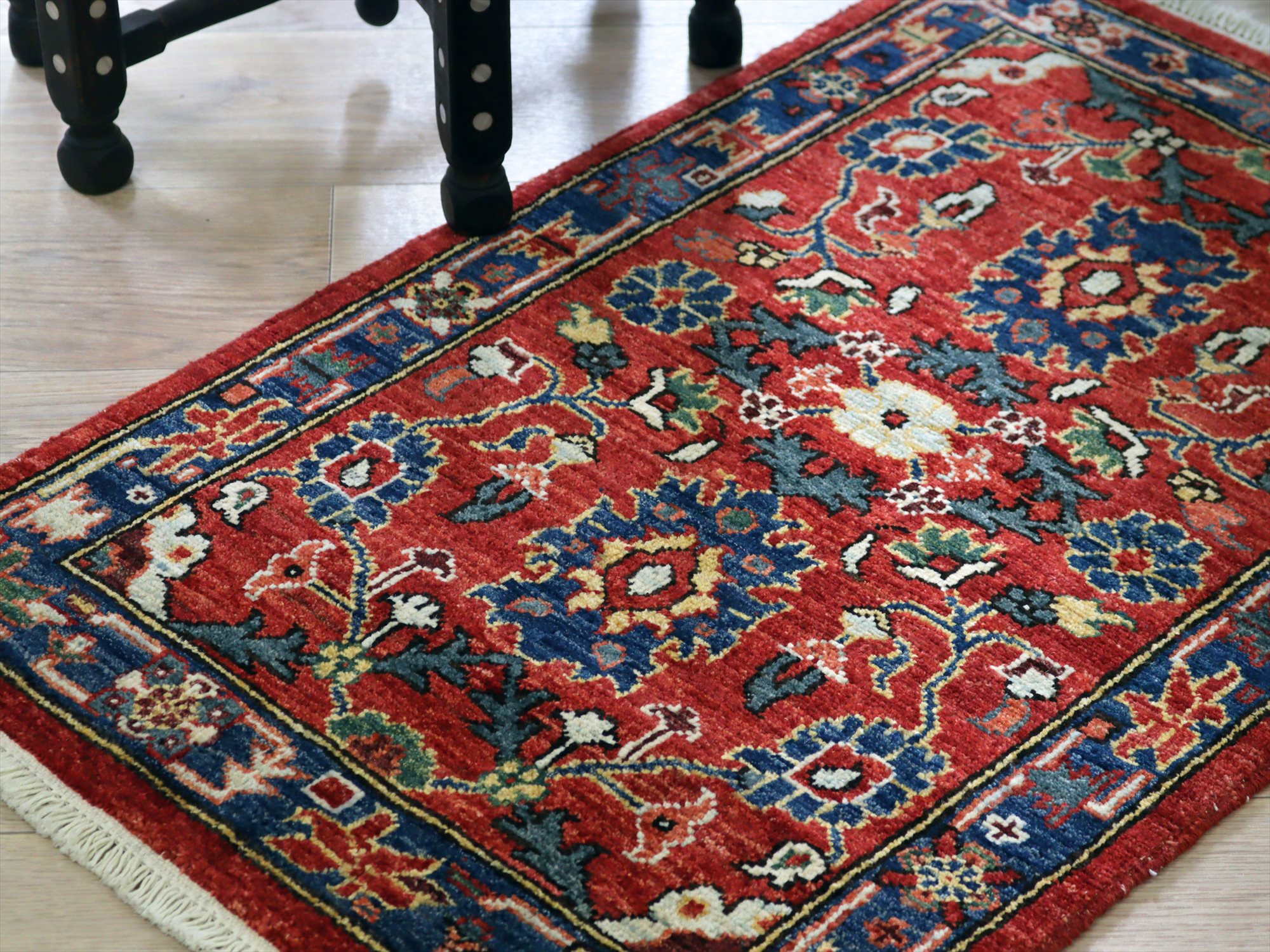 トルコの手織り絨毯 レッド 草木染98×62cm フラワーデザイン 手織りラグ