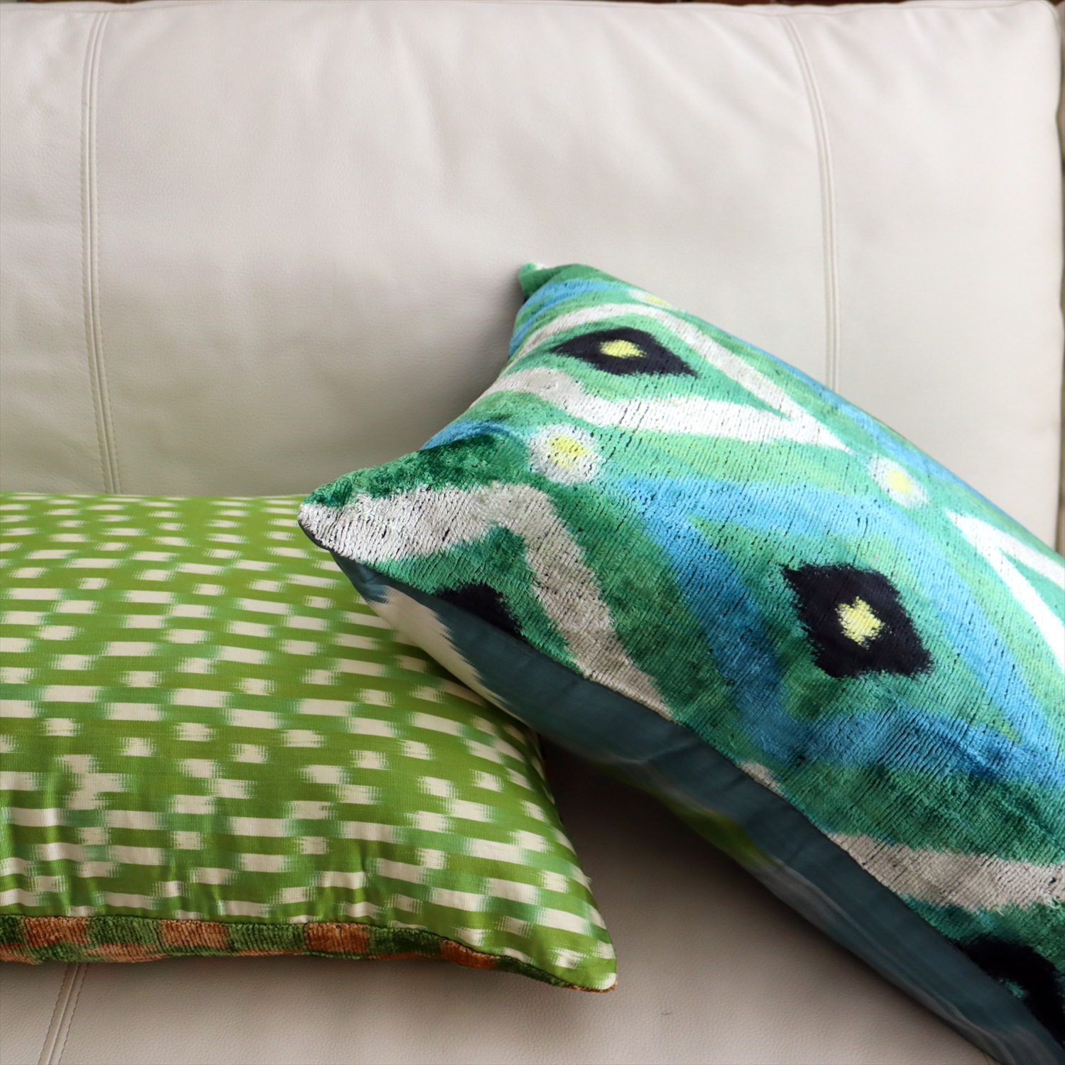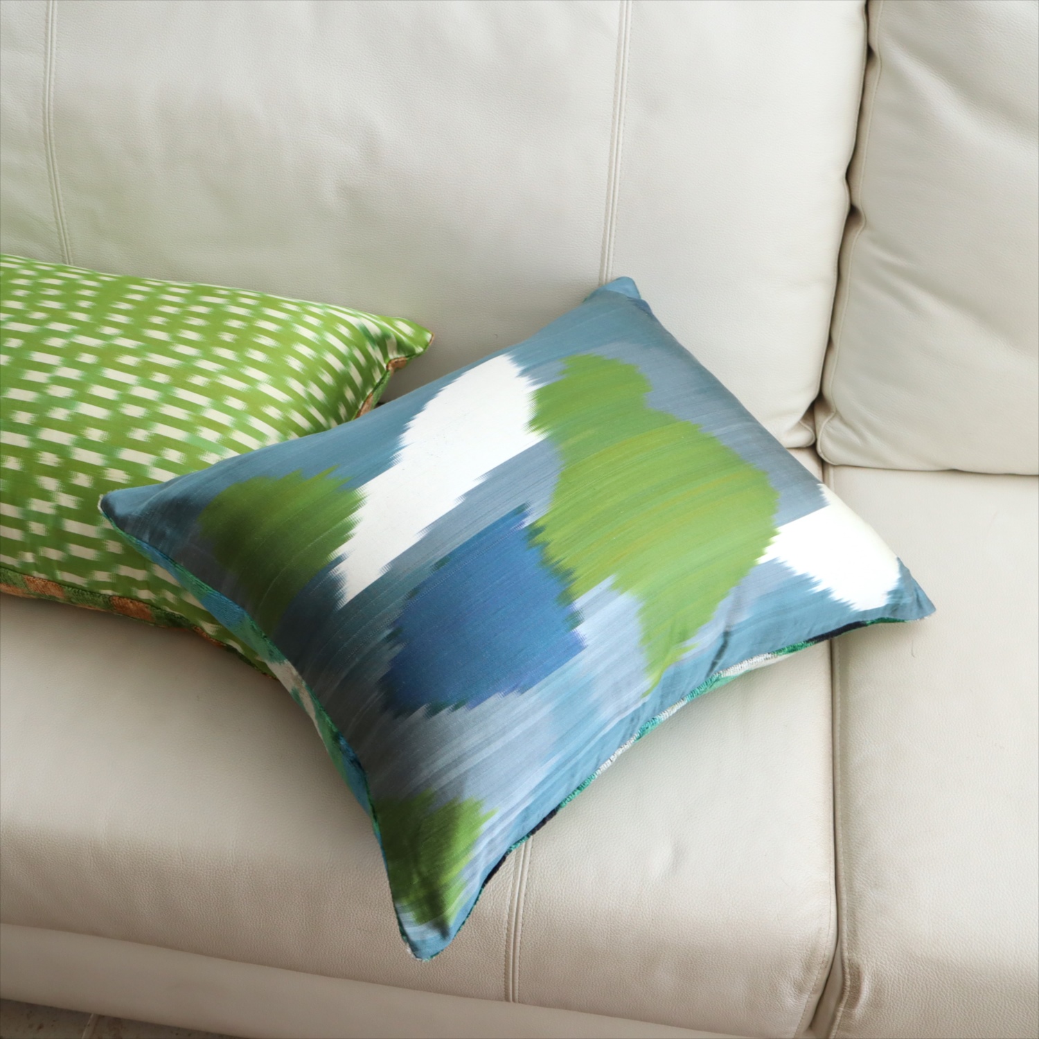 アトラス ベルベットイカットクッションカバー 両面シルク ミントグリーン ひし形 Silk Velvet Cushion - Double-Sided Design