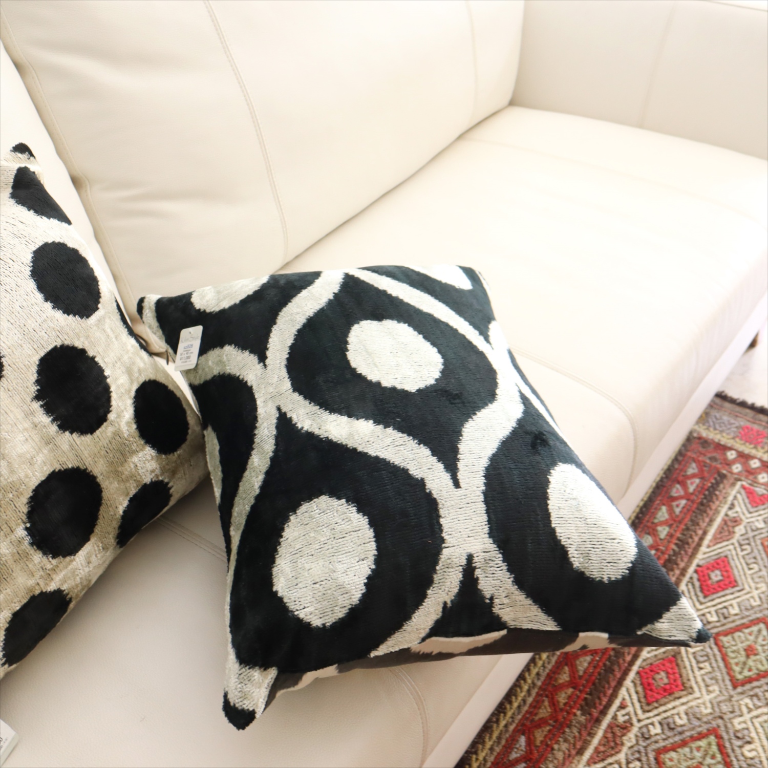 - アトラス ベルベットイカットクッションカバー 両面シルク ブラック ランタン柄 Silk Velvet Cushion - Double-Sided Design