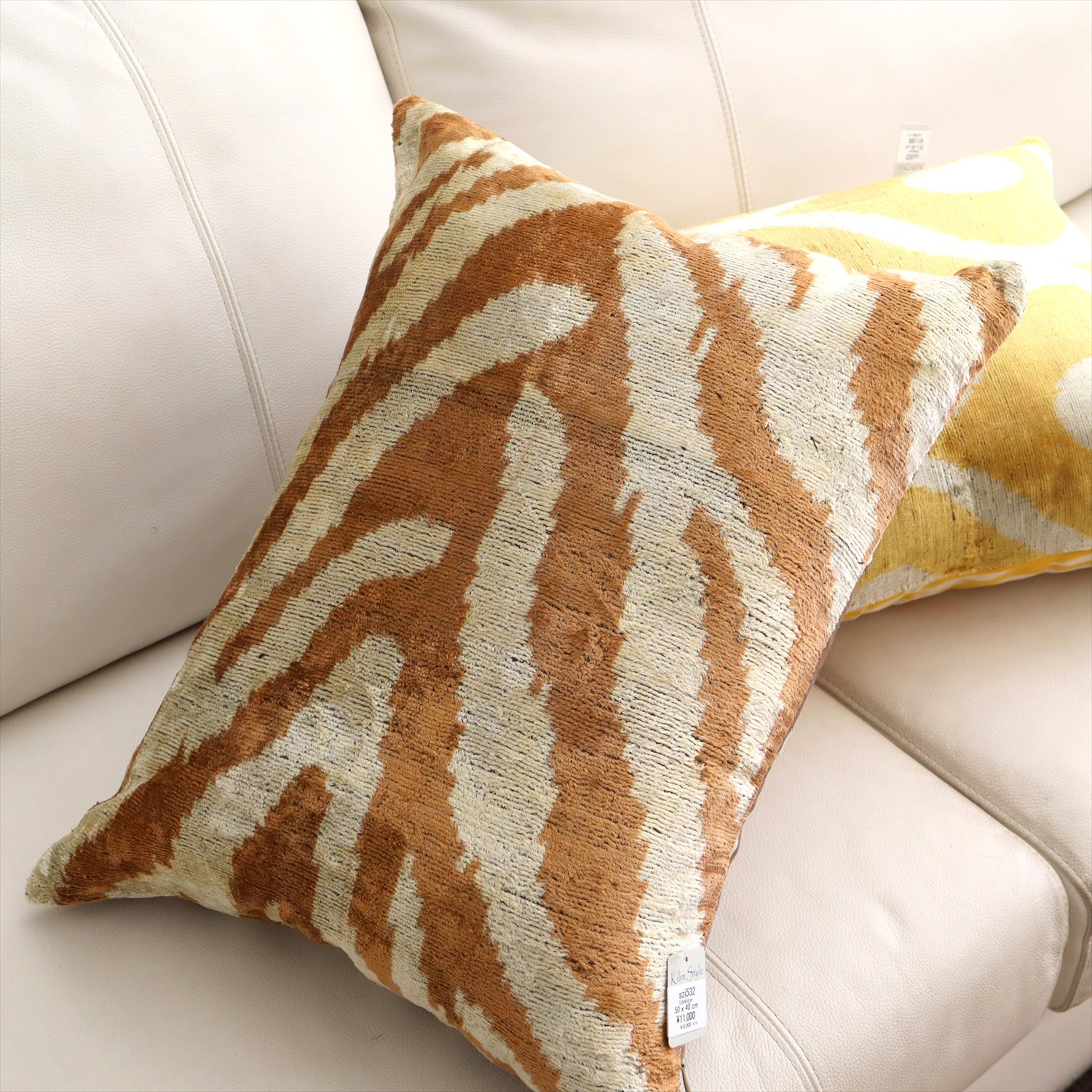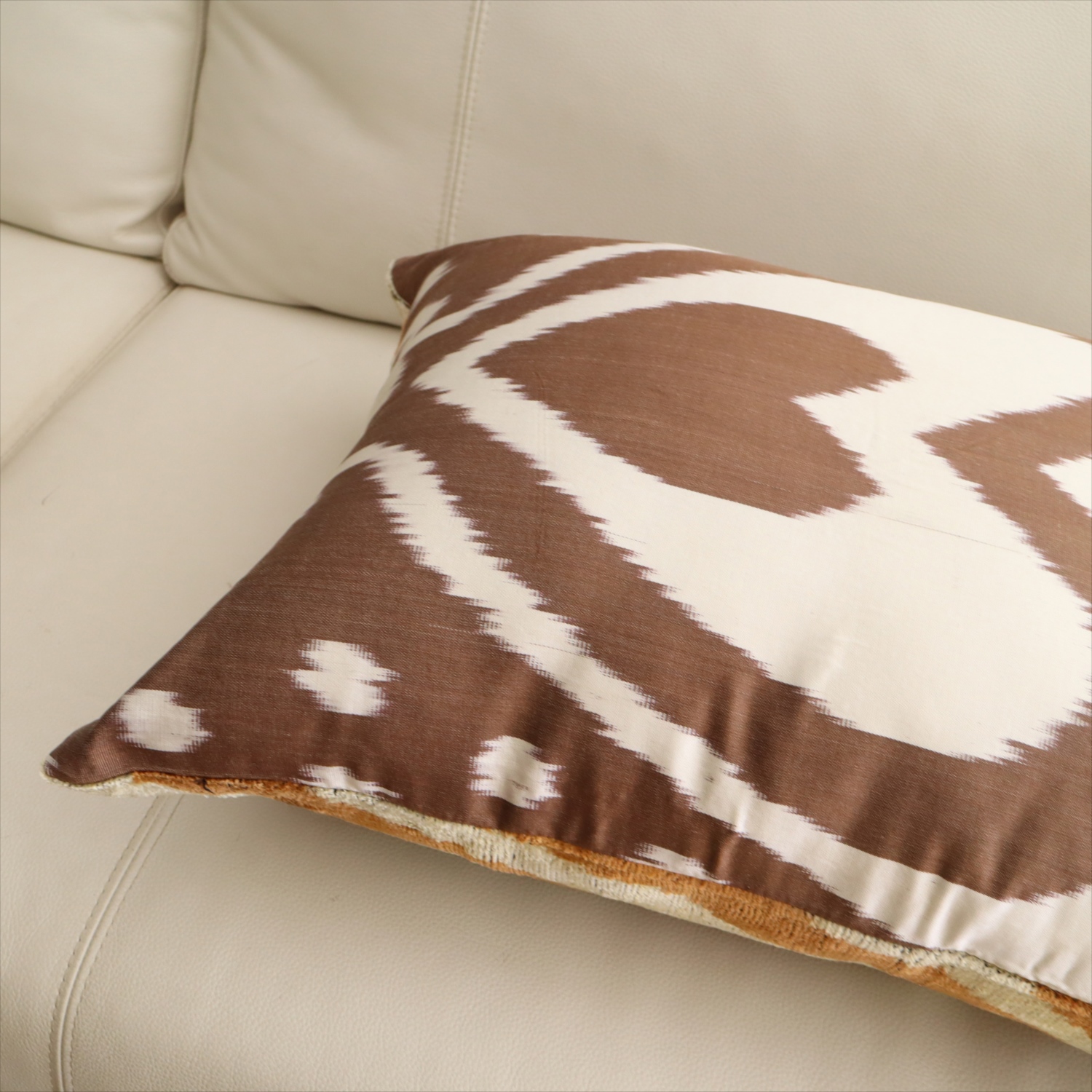- アトラス ベルベットイカットクッションカバー 両面シルク ゼブラ柄 ブラウン Silk Velvet Cushion - Double-Sided Design