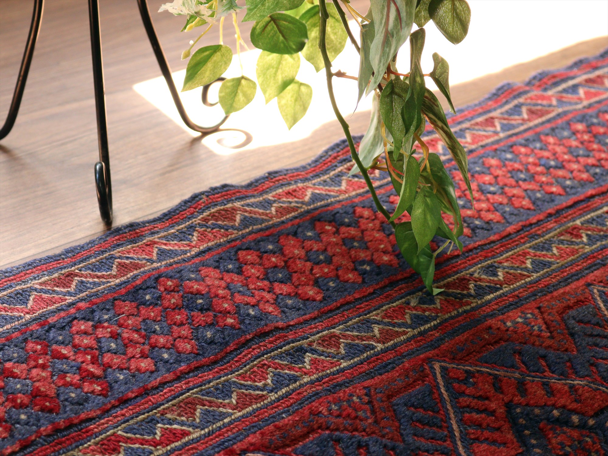 - オールドキリム アフガニスタン ミシュワニ194×149cm 連なる幾何学模様
