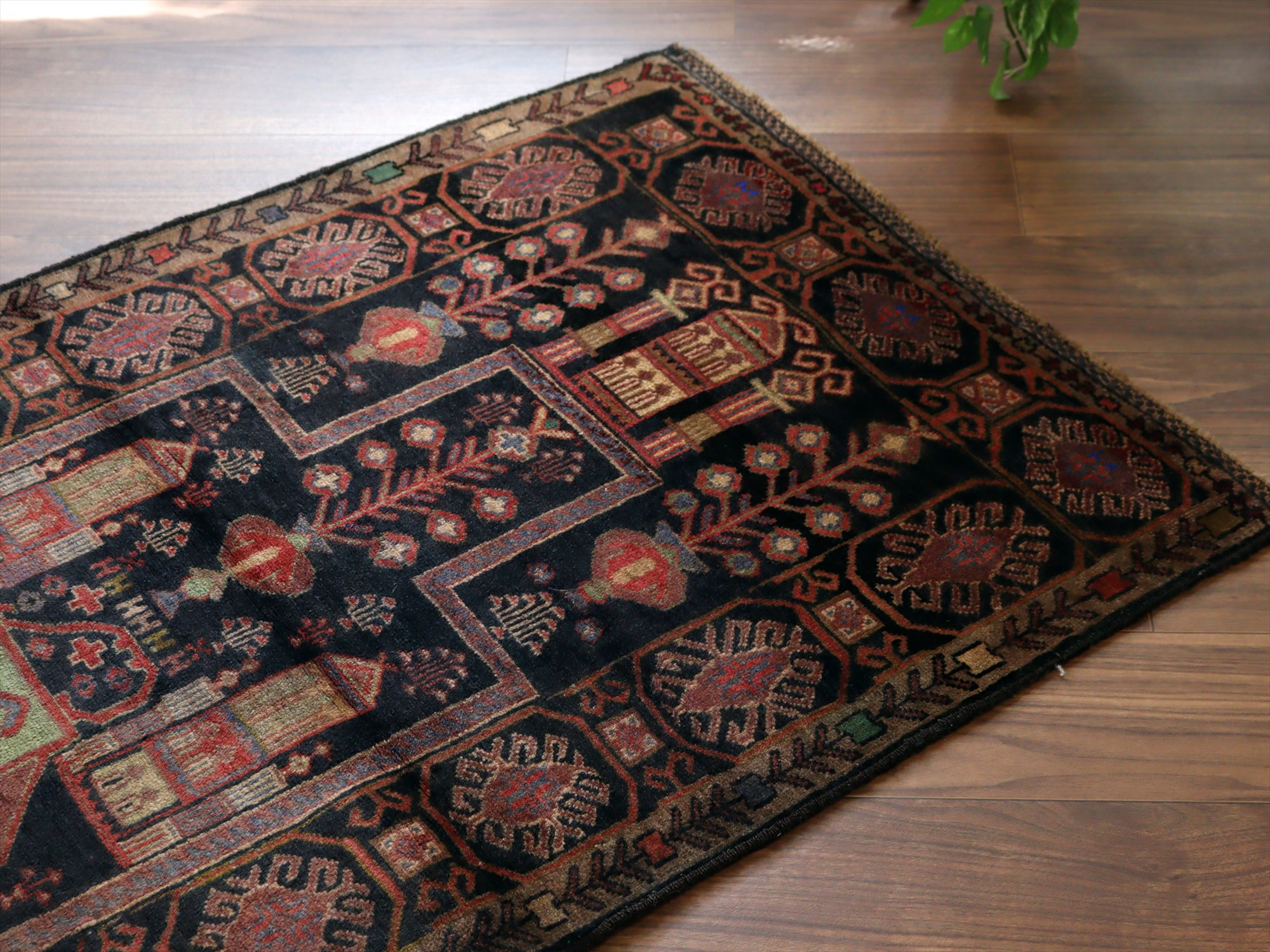 - トライバルラグ バルーチ121×82cm ミフラープ ブラック