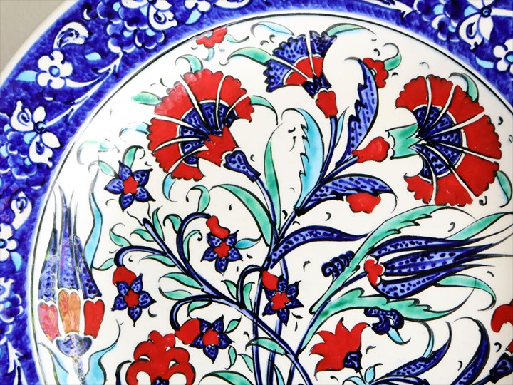 - トルコ 手書き絵皿 直径32cm 飾り絵皿 チューリップとカーネーション ミュージアムピース オットマンクラシック Turkish Hand Paint Plate