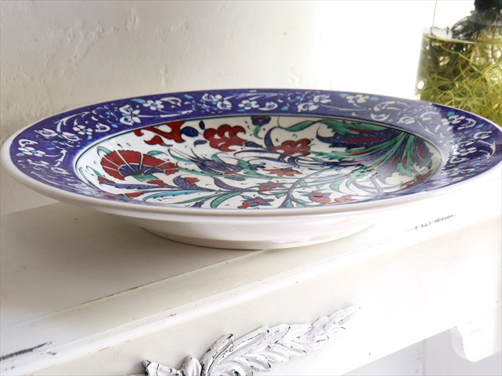 トルコ 手書き絵皿 直径32cm 飾り絵皿 チューリップとカーネーション ミュージアムピース オットマンクラシック Turkish Hand Paint Plate