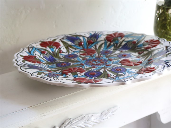 - トルコ 手書き絵皿 直径31.5cm 飾り絵皿 チューリップとカーネーション ミュージアムピース オットマンクラシック Turkish Hand Paint Plate