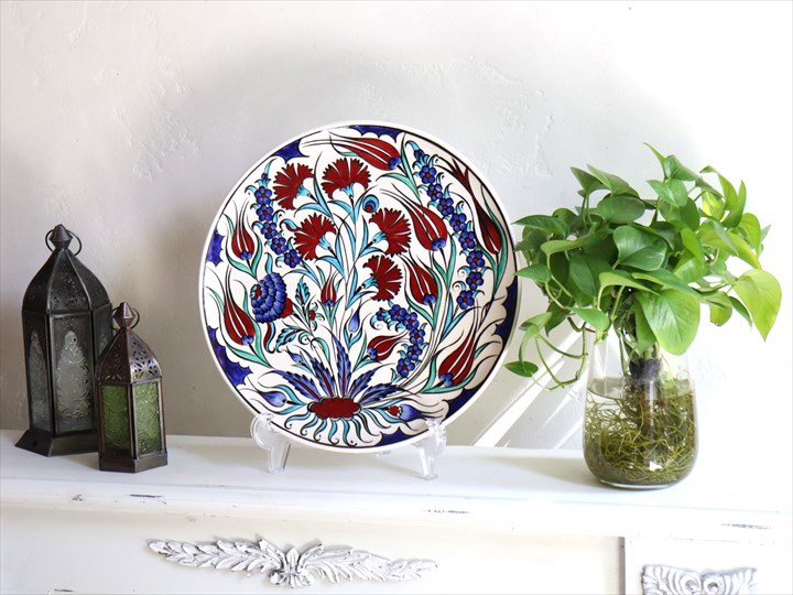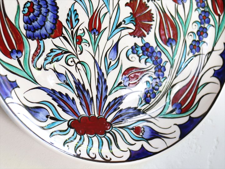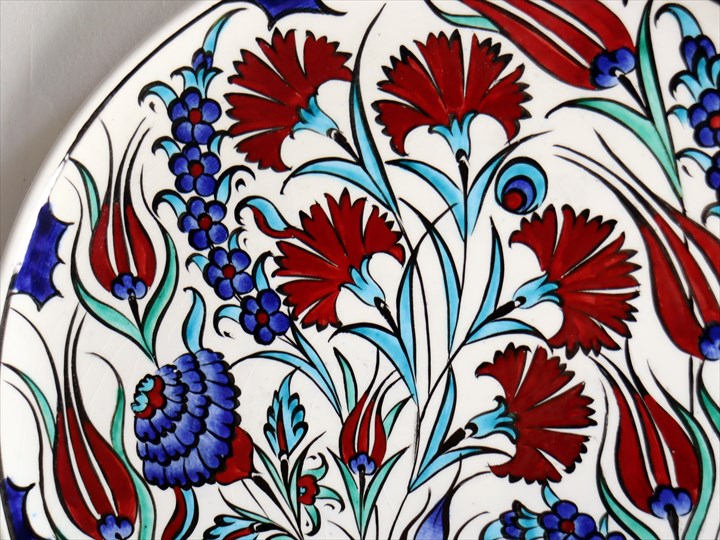トルコの陶器産業の中心地・キュタフヤで作られています。16世紀末に完成されたとされる、オスマントルコ独特の表現で描かれたチューリップとカーネーションが描かれています。