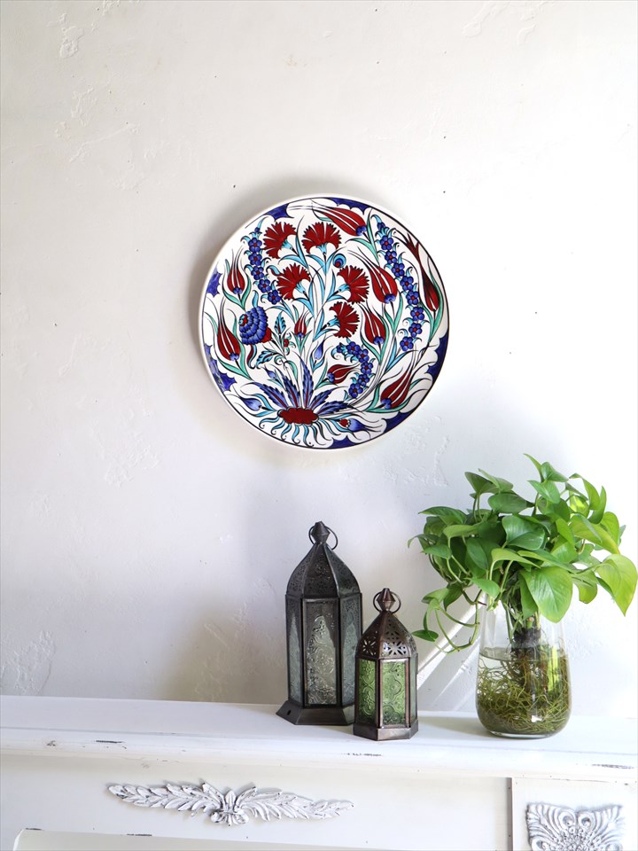 - トルコ 手書き絵皿 直径32.5cm 飾り絵皿 チューリップとカーネーション ミュージアムピース オットマンクラシック Turkish Hand Paint Plate
