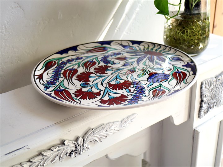 トルコ 手書き絵皿 直径32.5cm 飾り絵皿 チューリップとカーネーション ミュージアムピース オットマンクラシック Turkish Hand Paint Plate
