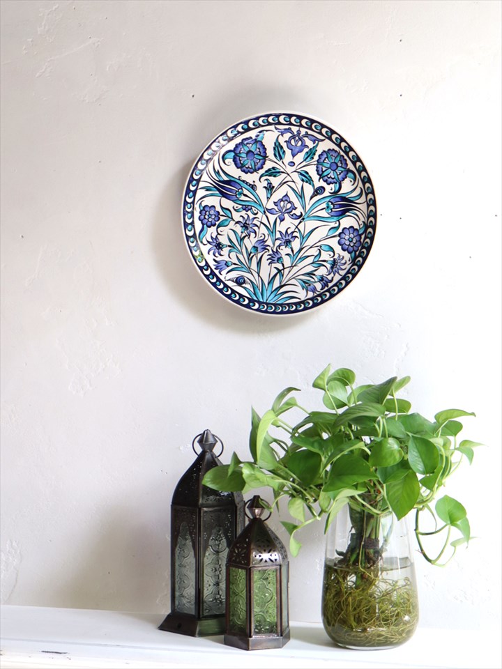 Key:置物 焼き物 陶器 皿 絵皿 飾り皿 プレート トルコ グランドバザール お土産 手書き 絵付け オリエンタル シルクロード Turkish Ceramic Iznik Ottoman Style Istanbul